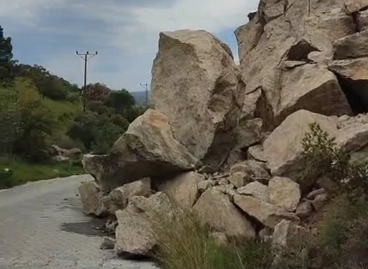 Yamaçtan kopan büyük kaya parçaları yol kenarına kadar indi.